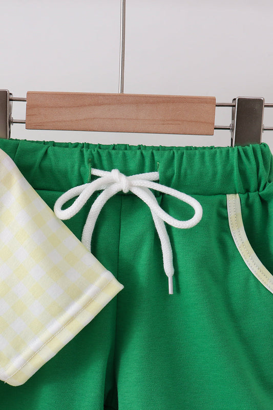 Yellow golf smocked gingham shorts set