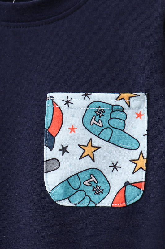 Navy baseball print shorts set