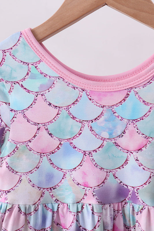 Purple mermaid embroidery ruffle dress