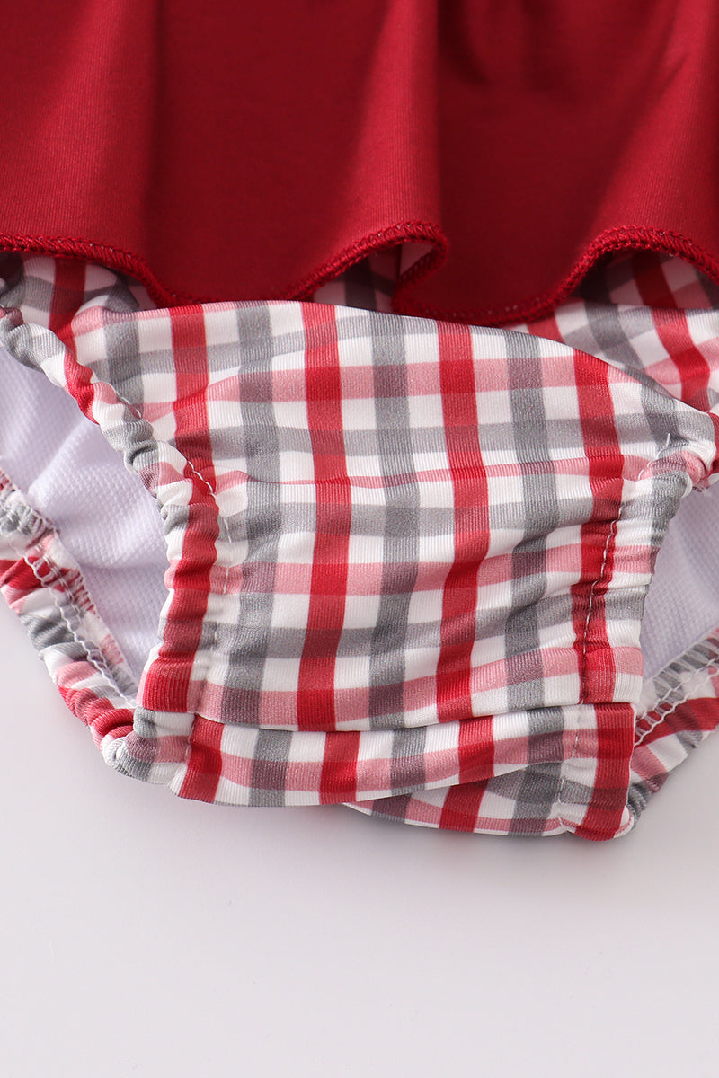 Get ready to have a trunk-load of fun in our Alabama elephant embroidery girl one-piece swimsuit! Perfect for a day at the beach or pool, this swimsuit features a cute elephant design and is sure to make a splash. Don't wait - grab yours now!