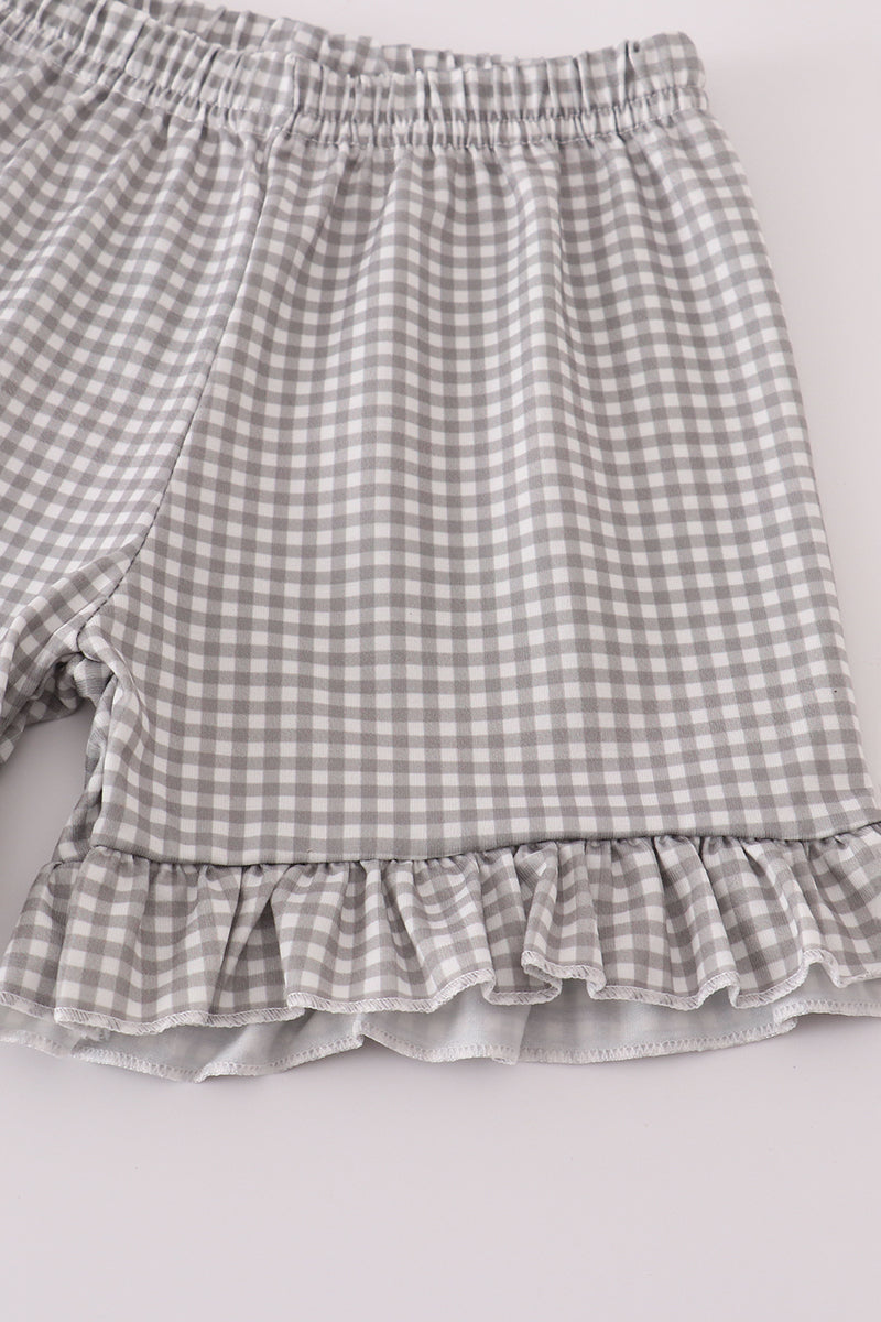 Get ready for some southern charm with our Alabama elephant french knot ruffle shorts set! This playful outfit features a cute embroidered elephant design and ruffled shorts for a fun and quirky look. Perfect for any little girl who loves to add a touch of whimsy to her wardrobe!
