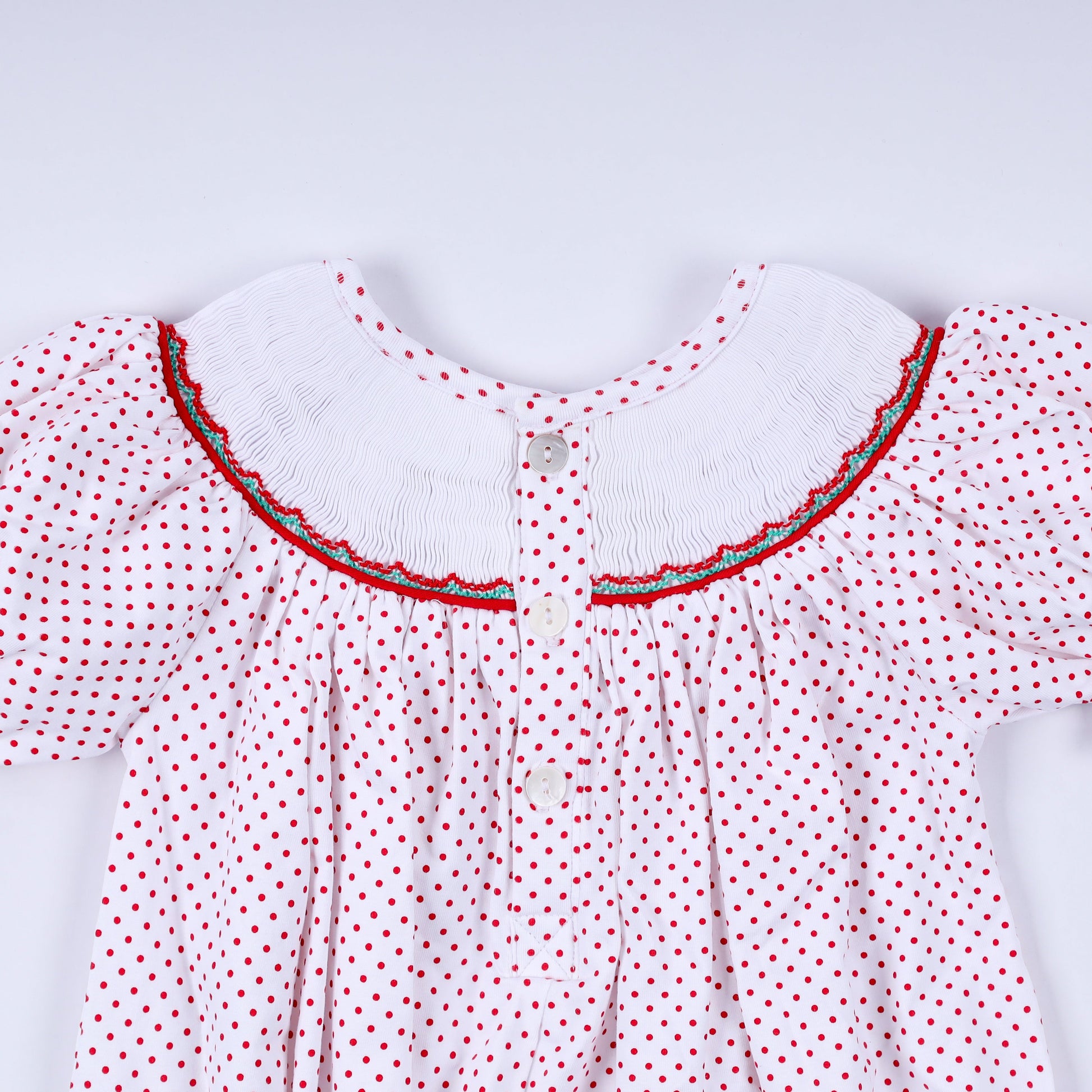 Red gingerbread hand smocked bubble